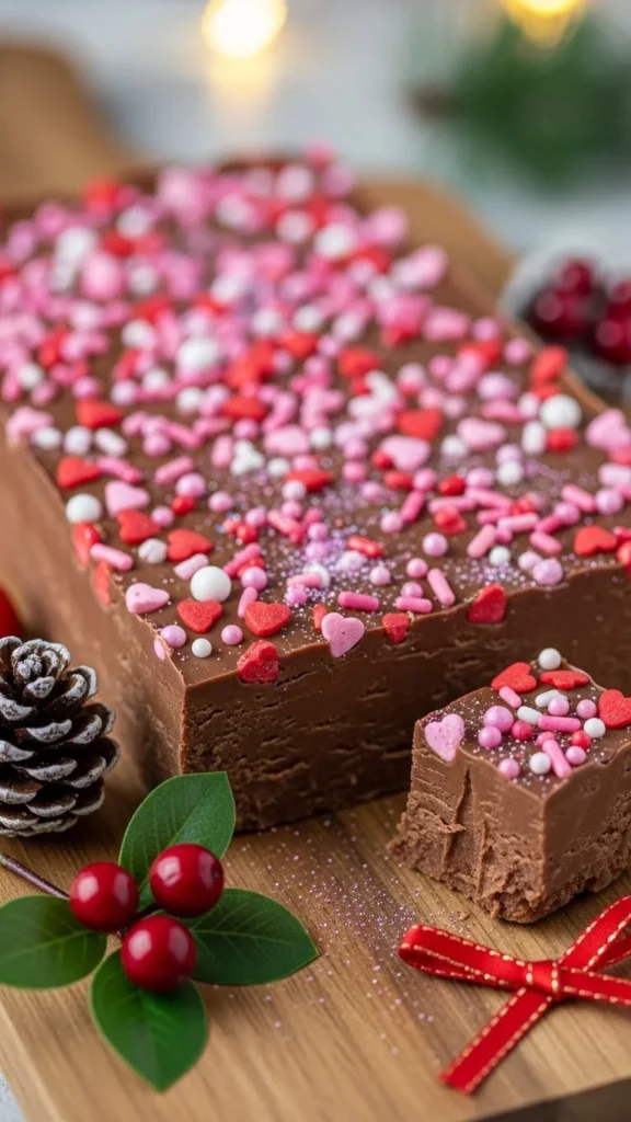 25. Milk Chocolate Sprinkle Valentine Fudge
