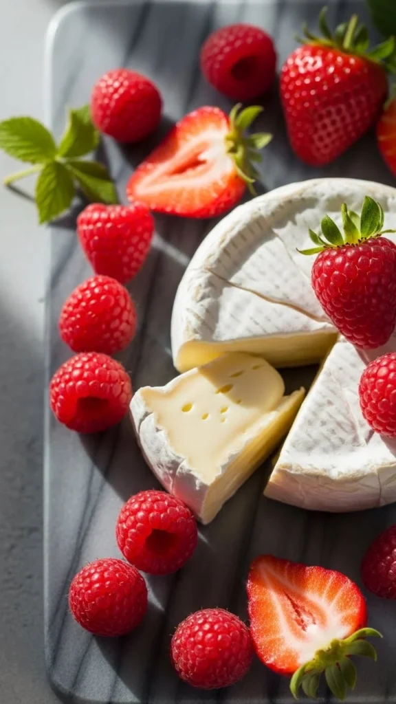 This board blends creamy cheese with fresh fruit and gentle sweetness.