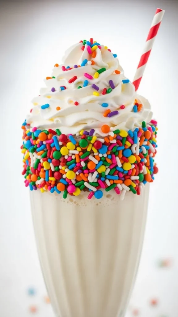 Serve with a straw and extra sprinkles on top for a festive touch.
