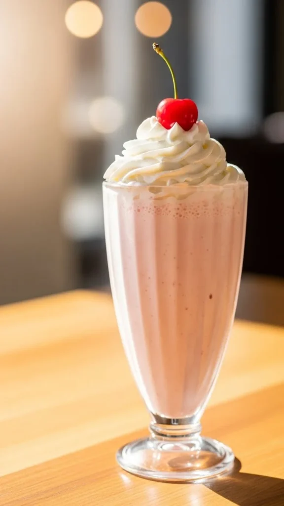 A delicate cherry-flavored shake with a gentle pastel hue.