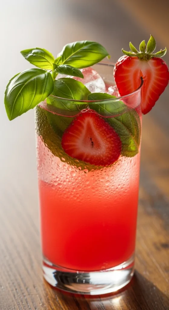 This mocktail combines sweet strawberries with aromatic basil for a refreshing twist.
