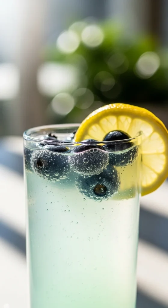 Blueberries and lemon create a fruity, fizzy drink with beautiful color.