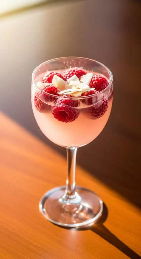 Creamy coconut with bright raspberries makes a sweet, tropical drink.