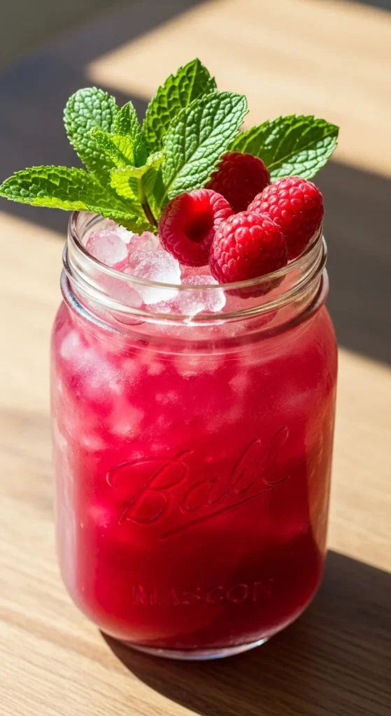 Garnish with a mint sprig and a few raspberries for a pop of color.
