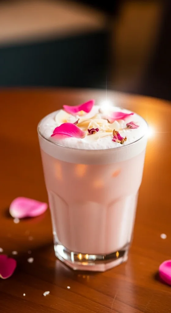 Creamy coconut pairs with floral rose for a silky, delicate drink.