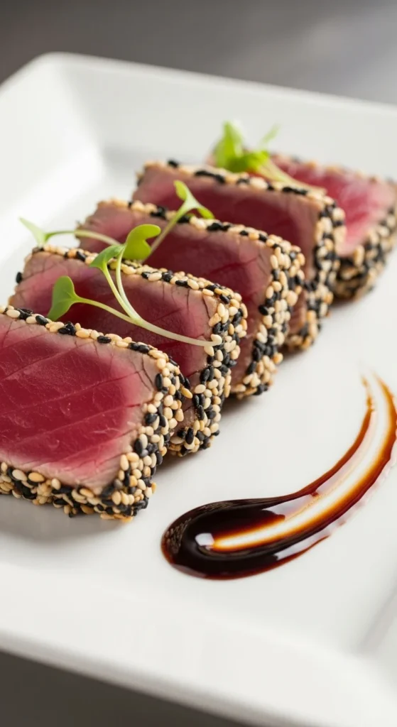 - Sear tuna 1–2 minutes per side over high heat.