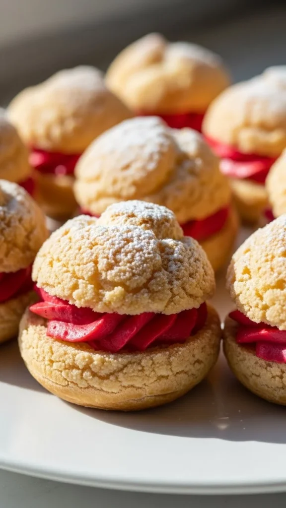 5. Mix whipped cream with raspberry jam and fill puffs.