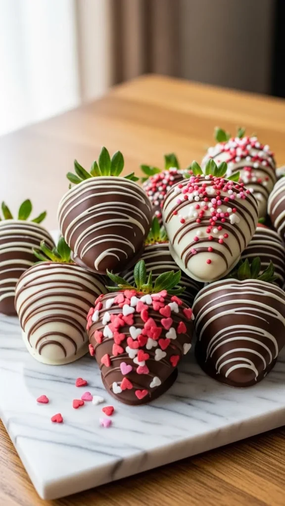 Juicy strawberries with a rich chocolate coating—classic and romantic.